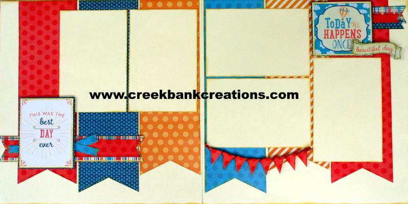 The Banner Punch Board from We R Memory Keepers does all that! When I first heard about the tool I wasn't sure I would use it that much. Then the tool arrived! Not only does it make large banners for parties but it also makes pennants as small as 1". the layout below shows both pennants and banners made with the banner punch board. This layout is onour website in a kit for sale.